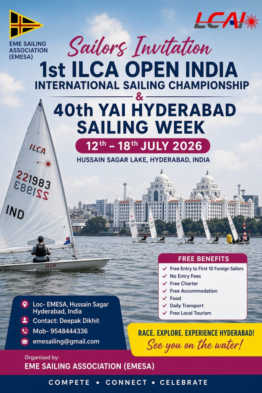 2026年印度第1屆ILCA國際公開賽暨YAI 第40屆海得拉巴帆船週 7/12-7/18 海得拉巴侯賽因薩格爾湖